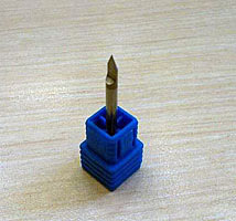 Рабочий диаметр R = 0,1 мм; диаметр хвостовика D2 = 3 мм; угол заточки α = 45 град.; длина инструмента L = 38 мм.