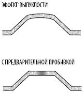 Сочетание свойств материала и пропорций формовки может вызвать придание арочной формы верхней части профиля, которая должна быть плоской. Если арочная форма неприемлема, предварительная пробивка отверстия может существенно уменьшить напряжение в материале, которое вызывает образование выпуклой формы, и верх формовки станет значительно более плоским.