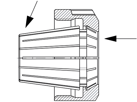 Помните: неправильная сборка может привести к необратимому нарушению концентричности цанги и повреждению зажимной гайки.
