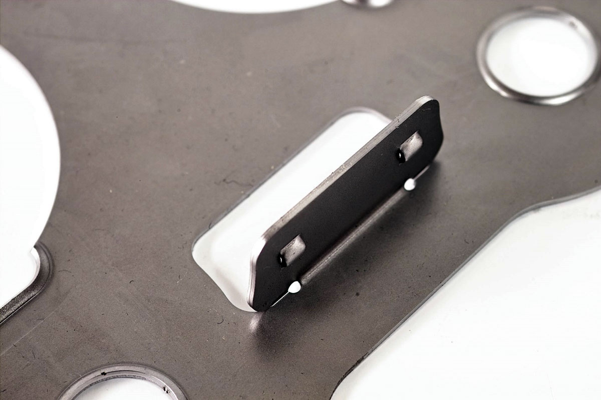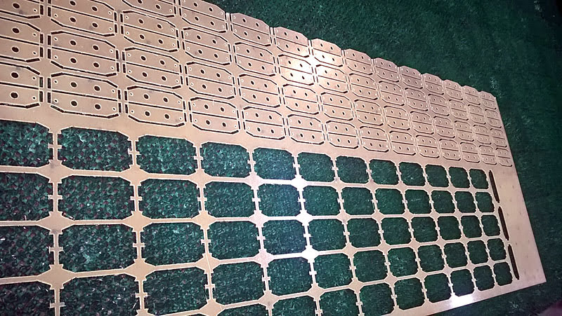 Криволинейные, неповторяющиеся контуры на КПП зачастую можно сделать только нибблингом — способом координатной штамповки, при котором каждый удар — это срез небольшой части металла, гораздо меньшей, чем сам инструмент. Такой вариант подойдет, пожалуй, только для единичного опытного производства из-за низкой производительности и повышенного износа инструмента.