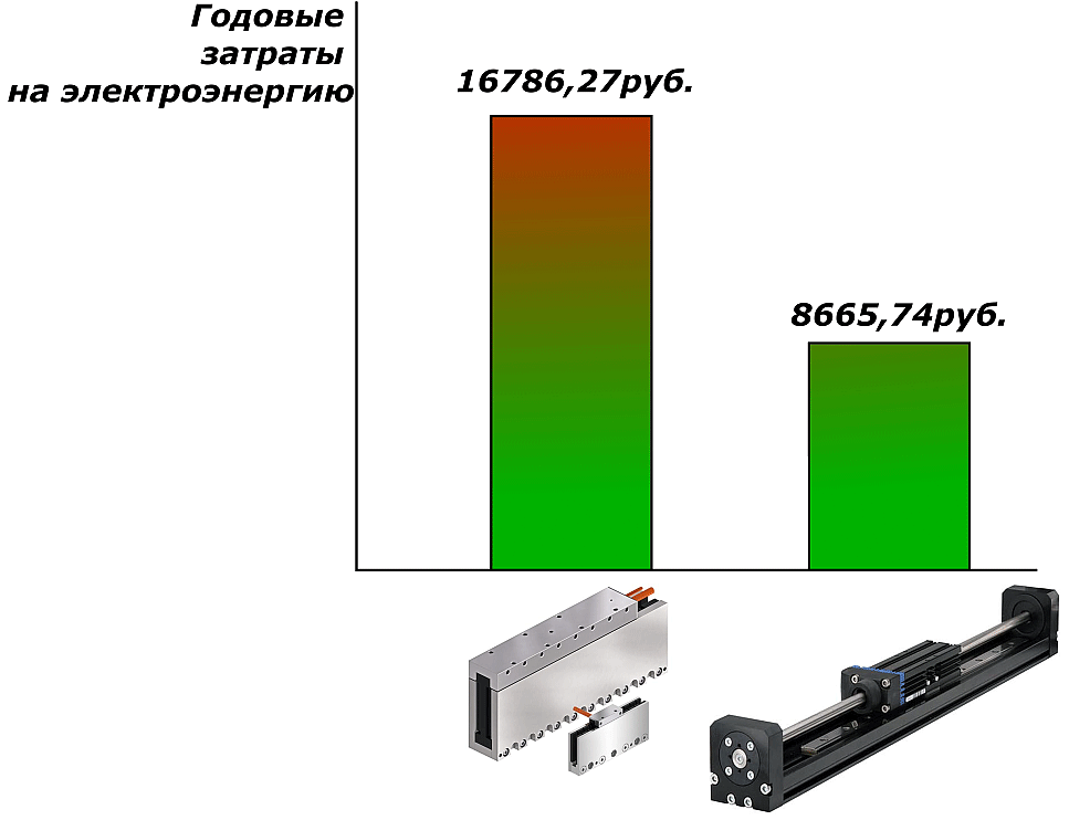 Сравнение годовых затрат на электроэнергию U-образного линейного двигателя и ЦЛД