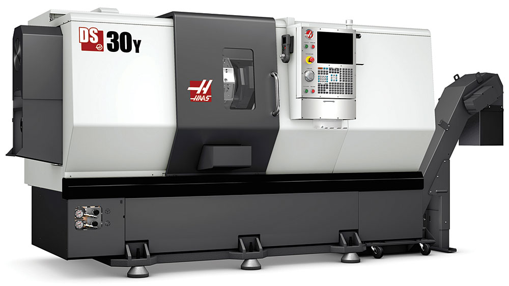 Сверхскоростной Haas DS-30SSY обладает максимальной режущей способностью 406x584 мм и оборудован 24-позиционной гибридной головкой BOT/VDI. Основной шпиндель A2-6 обладает гидравлическим патроном диаметром 210 мм и оснащен векторным приводом мощностью 22,4 кВт. Вспомогательный шпиндель A2-5 также оснащен гидравлическим патроном диаметром 211 мм и векторным приводом мощностью 14,9 кВт. Оба шпинделя вращаются со скоростью 4800 об/мин, обладают диаметром прутка 51 мм. Скорость быстрых перемещений равна 24 м/мин по оси X, 30 м/мин по оси Z и 18 м/мин по оси Y.