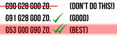 Теперь я прописываю G00 и G90 в каждой из строк с кодом G53. Но я делаю это лишь для ясности и безопасности. Вот, собственно, и все про G53.