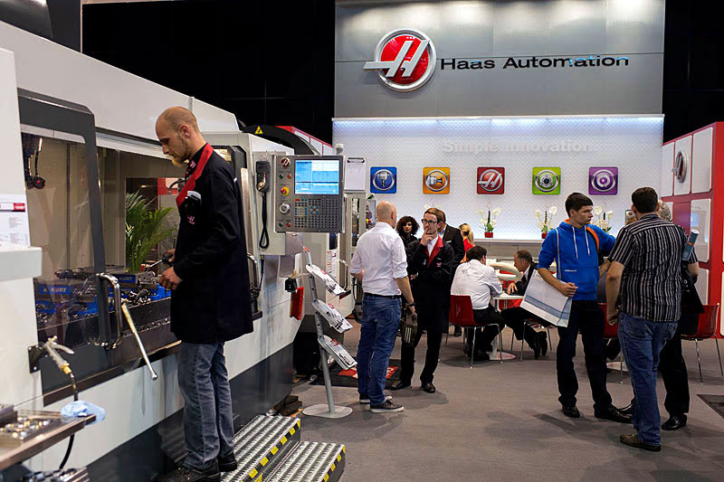 На стенде HAAS Automation были представлены новинки 2014 года: токарные центры нового поколения — ST-15, ST-25 и ST-45 ; DT-1 — сверлильно-резьбонарезной обрабатывающий центр с новым высокоскоростным шпинделем — 15 000 об/мин.