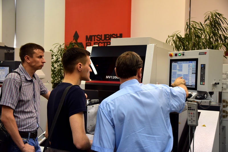 Во время проведения мероприятия проводилась демонстрация работы станков Mitsubishi EA8S и MV1200R .