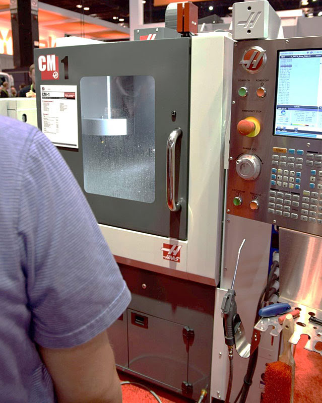 Малогабаритный фрезерный станок Haas CM-1 спроектирован для обработки мелких сложных деталей. Шпиндель вращается со скоростью до 30 тысяч оборотов в минуту и может работать с пятью осями координат.