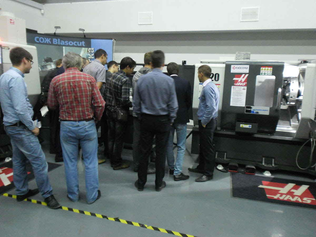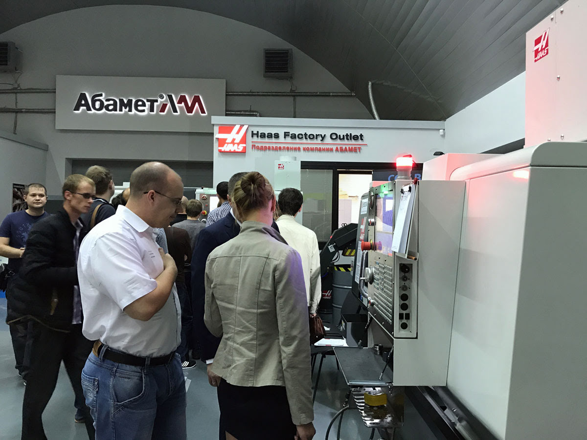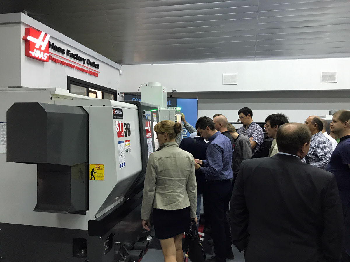 - живую демонстрацию полной линейки токарных станков Haas , включая податчик прутка ;