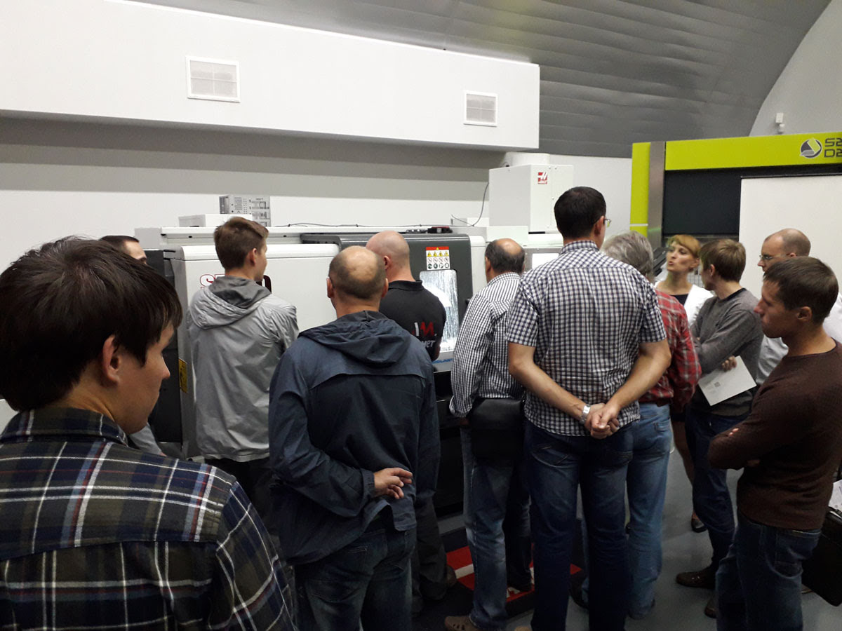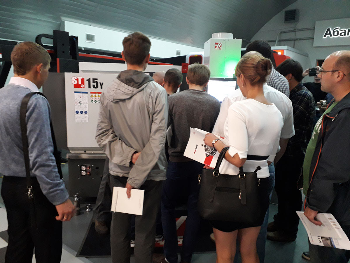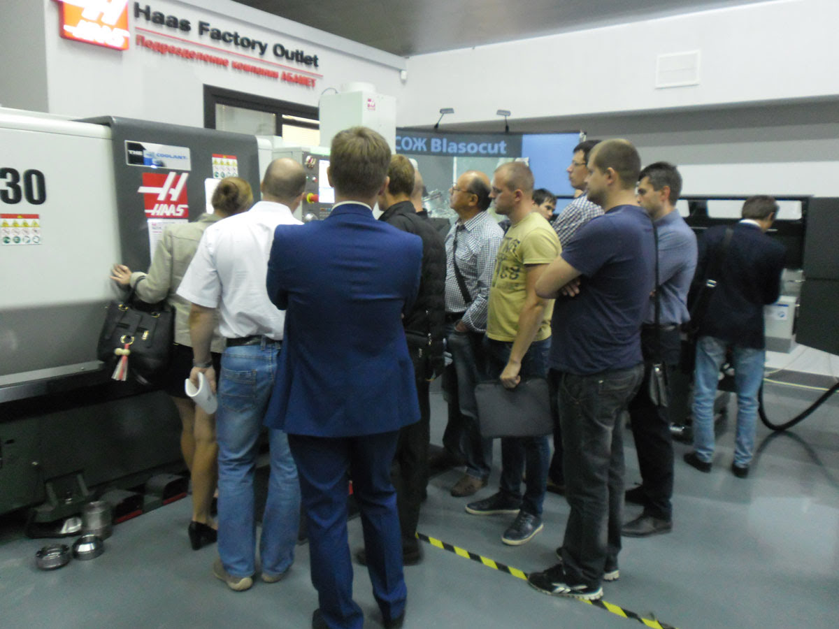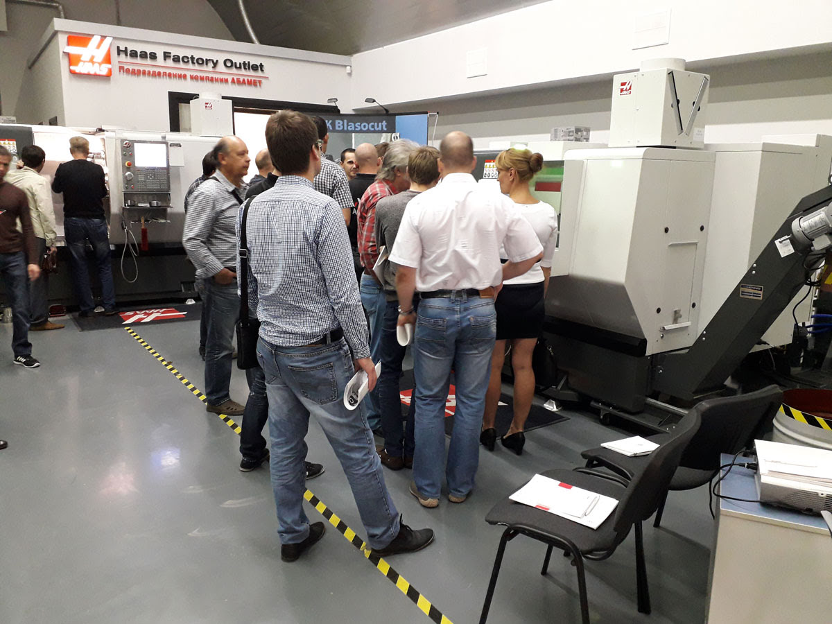 - живую демонстрацию полной линейки токарных станков Haas , включая податчик прутка ;