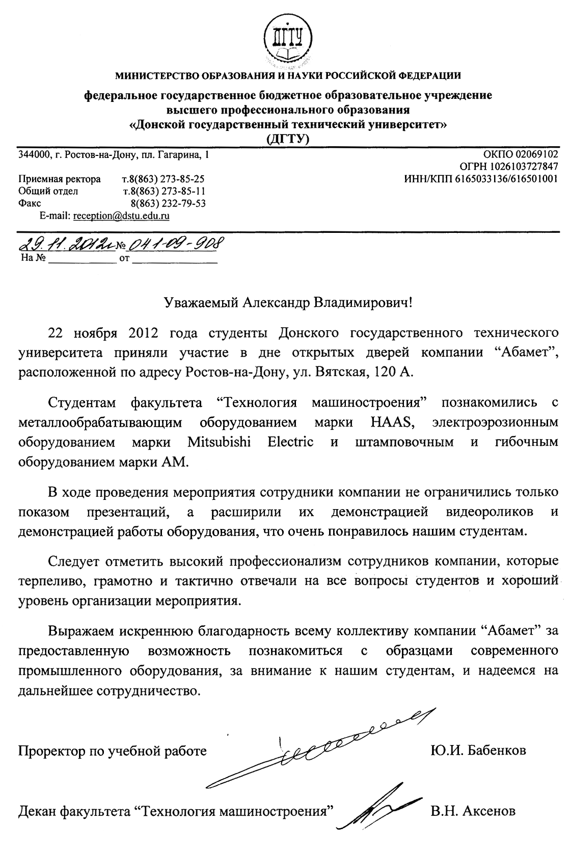 23 ноября 2012 года компания «Абамет» провела ДЕНЬ ОТКРЫТЫХ ДВЕРЕЙ в Ростове-на-Дону . Посетители мероприятия смогли познакомиться с современными решениями для металлообрабатывающих и листообрабатывающих производств: