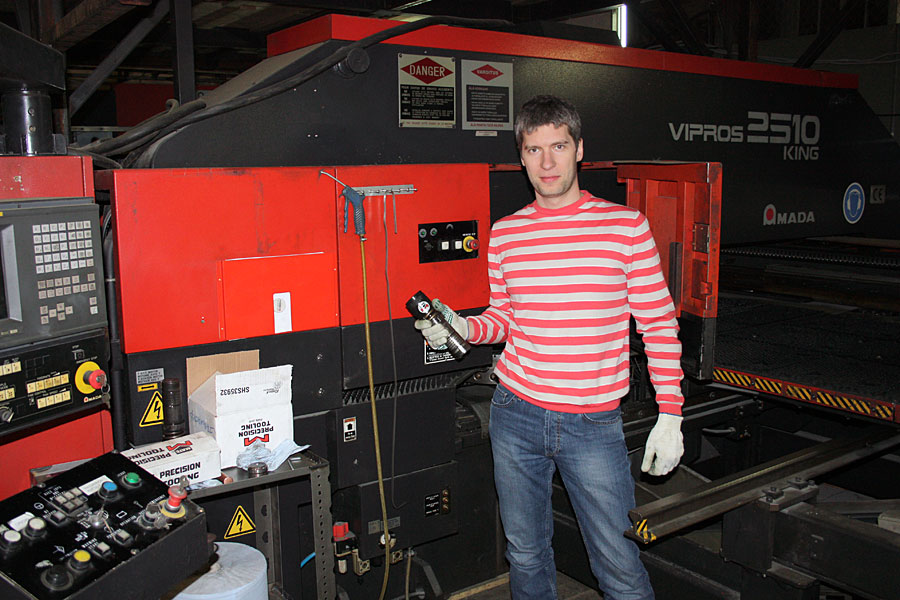 А. Л. : Безусловно! Инструмент в штамповке решает если не все, то многое. Еще в самом начале нашего пути Юрий уверял меня, что все наши технологические возможности будут напрямую зависеть от инструмента. Я убеждаюсь в этом почти на каждом новом контракте. Если у нас есть весь необходимый инструмент, то заказ выполняется быстро, технологично и с низкой себестоимостью. Но, к сожалению, на все случаи невозможно иметь запас. Тем не менее, нам еще ни разу не пришлось отказаться от хорошего контракта по причине отсутствия инструмента. В особо сложных ситуациях, когда без специального инструмента просто не обойтись, переговорный процесс мы ведем таким образом, чтобы иметь небольшой резерв по времени. В этих случаях решающим фактором становится время подбора и поставки инструмента. Однажды, еще в самом начале пути, по причине недостаточного опыта оператор сломал специальный инструмент на тестовой детали. Контракт на изготовление был уже подписан, мы даже получили инструмент для него, но ждали заказанный металл, окрашенный в необходимый клиенту цвет. К моменту получения металла мы успели повторно заказать и получить сломанные детали инструмента. Вообще, первое время для нас было удивительно, как инструмент фирмы MATE, произведенный в США на заказ, можно так быстро доставить в Москву.