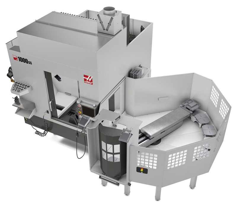 5. Для 5-осевых центров UMC-1000 и UMC-1000SS Haas начал предлагать 8-местную систему смены паллет PALLET-POOL-UMC (+1 паллета в рабочей зоне). Размер паллеты 400х298 мм, максимальная нагрузка 90,7 кг. Система включает в себя также сменщик инструмента бокового типа на 50 позиций (в базовой комплектации сменщик на 30 инструментов). Система смены паллет позволяет станку работать долгое время в автоматическом режиме. Также она позволяет не снимать наладку с паллеты при производстве различных деталей. Система может быть установлена только на заводе Haas.