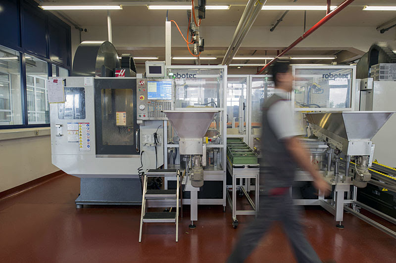 За исключением винтов и пружин, все компоненты секаторов, основными из которых являются два лезвия, изготавливают на заводе в Швейцарии. Традиционно их производство до сих пор представляло собой штамповку, процесс, который используют практически все компании в отрасли производства садовых инструментов. С помощью новейших сверлильно-резьбонарезных центров Haas DT-1 , оснащенных загружающим и переносящим детали роботом, компания FELCO выделилась из этой толпы, перейдя к производству лезвий с помощью ЧПУ.