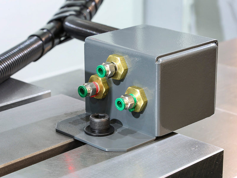Очередная справка (зачем вообще нужна опция управляемой подачи воздуха). Устройство облегчают работу с пневматическим зажимными устройствами. Оно монтируется на рабочем столе станка, к нему подключаются трубки пневматических устройств. Включение и выключение подачи воздуха осуществляются M-кодами. Удобно работать с пневматическими зажимными устройствами.