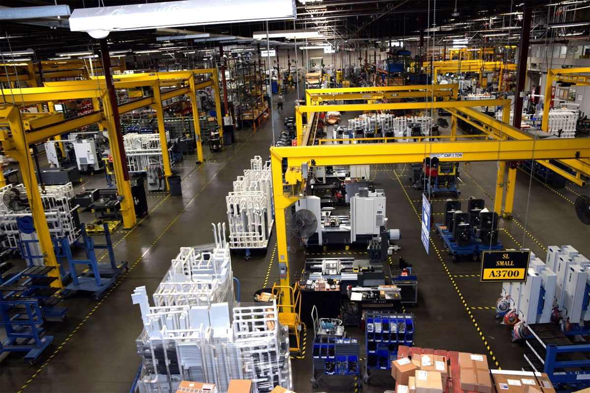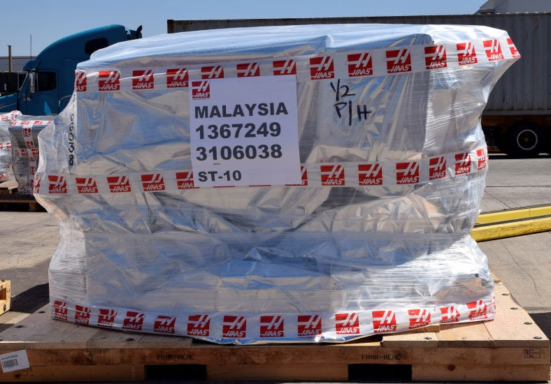 HAAS производит 50% станков для внутреннего рынка США. Это главный производитель металлорежущего оборудования в стране. Остальные станки отправляются на экспорт в различные страны. На фото станки, ожидающие отправки.