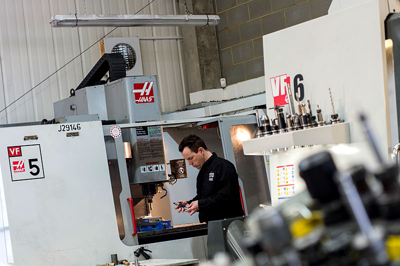 В производственном цехе установлено три станка Haas с ЧПУ: VF-5 со шпинделем, частота вращения которого достигает 10 000 об/мин, а также VF-2 и VF-6 со шпинделем, частота вращения которого достигает 7500 об/мин. Два станка оснащены четырехосевым поворотно-наклонным столом Haas .