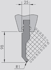 Пуансон BIU-002/1, H=98 мм, α=80°, R=1 мм, 515 мм
