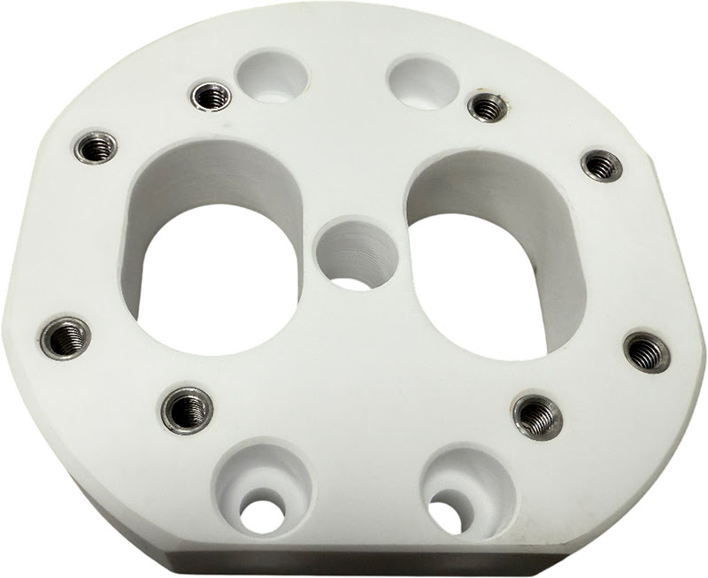 Реплика нижнего керамического изолятора X055C778G51. Применяется на проволочно-вырезных станках Mitsubishi серии FA\BA\NA. Изолятор крепится к нижней трубе и в свою очередь держит нижнюю голову. Имеет резьбы, выполненные из латуни для крепления нижней головы. Осуществляет электрическую изоляцию нижней головы от трубы. Материал: керамика.