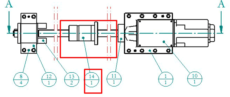 Составная часть фрезерного станка фирмы Abamet. Предназначена для преобразования вращательного движения двигателя в поступательное движение оси У. Диаметр ШВП 32мм, шаг 16мм, длина 938мм. Производитель THK. Материал - сталь.